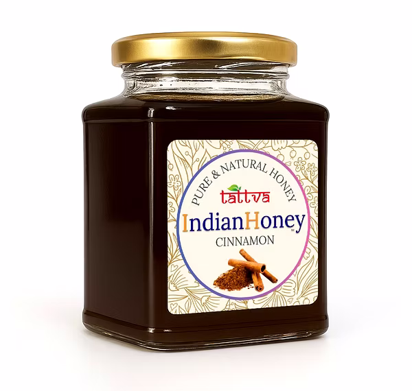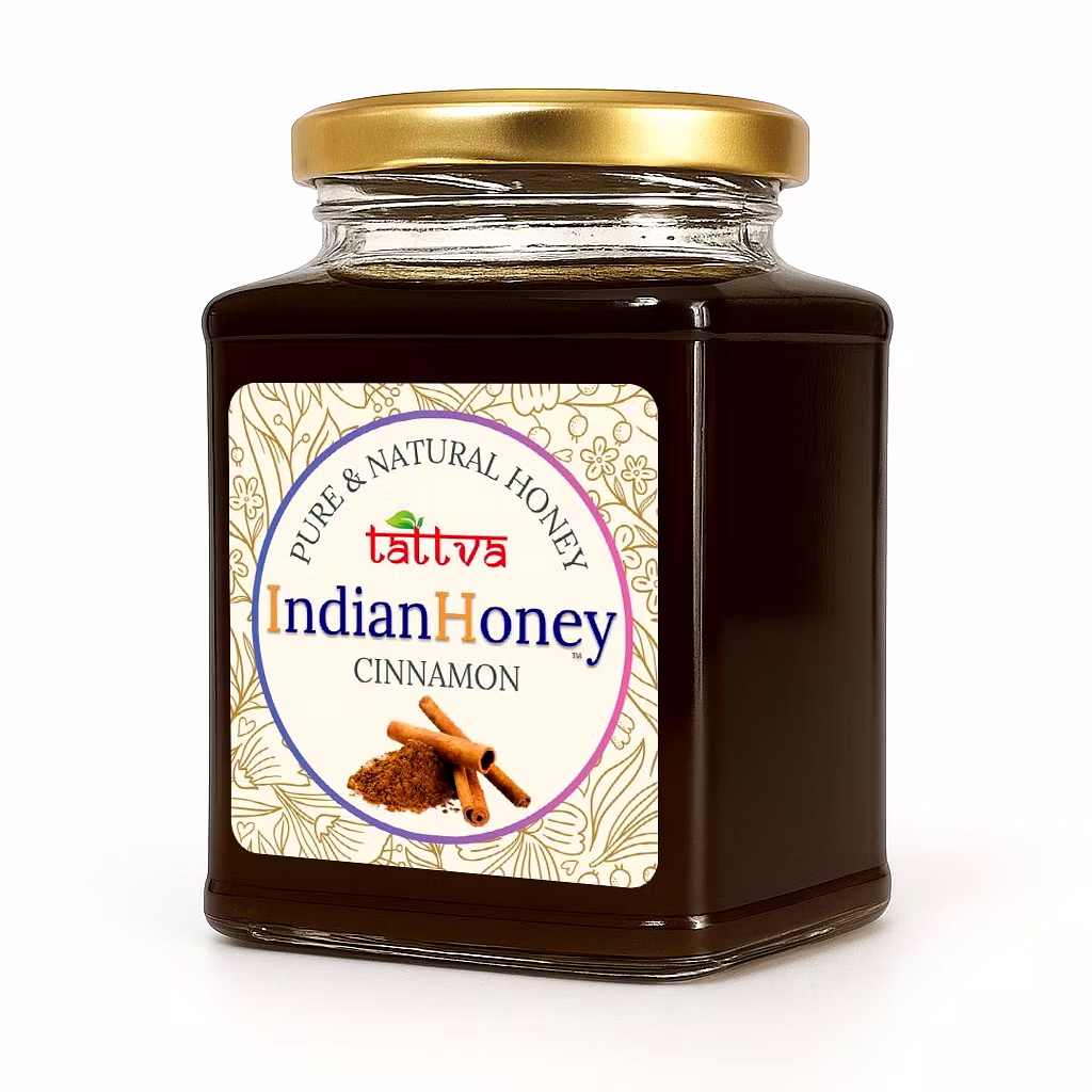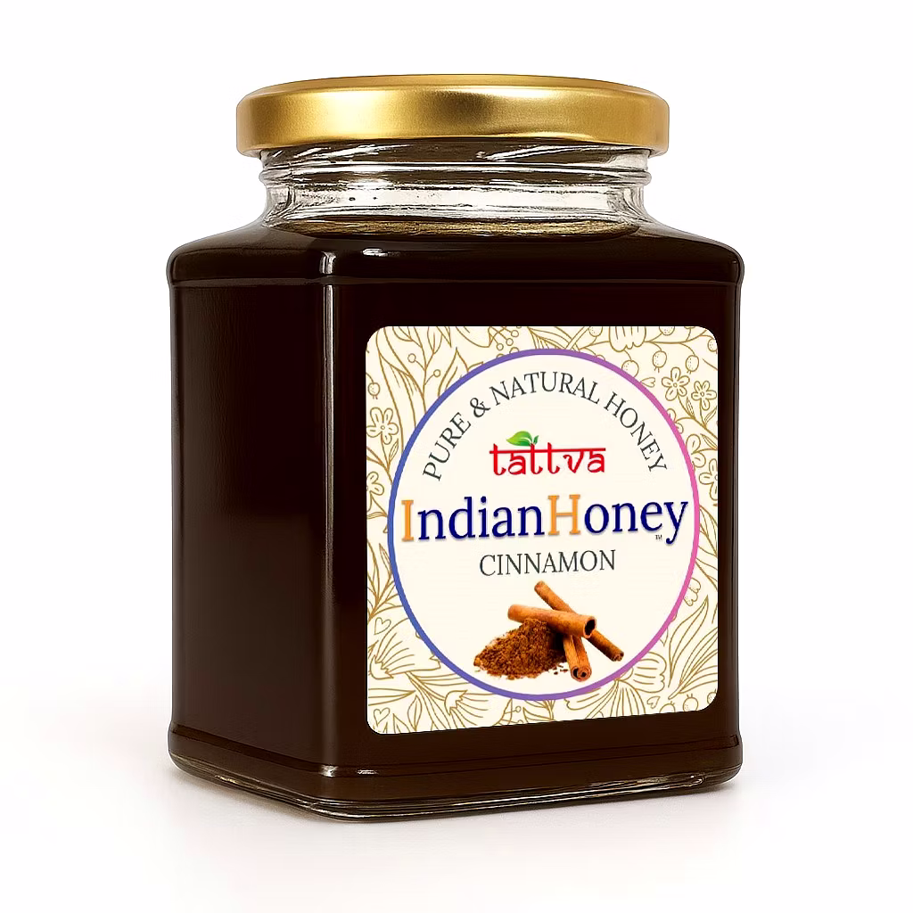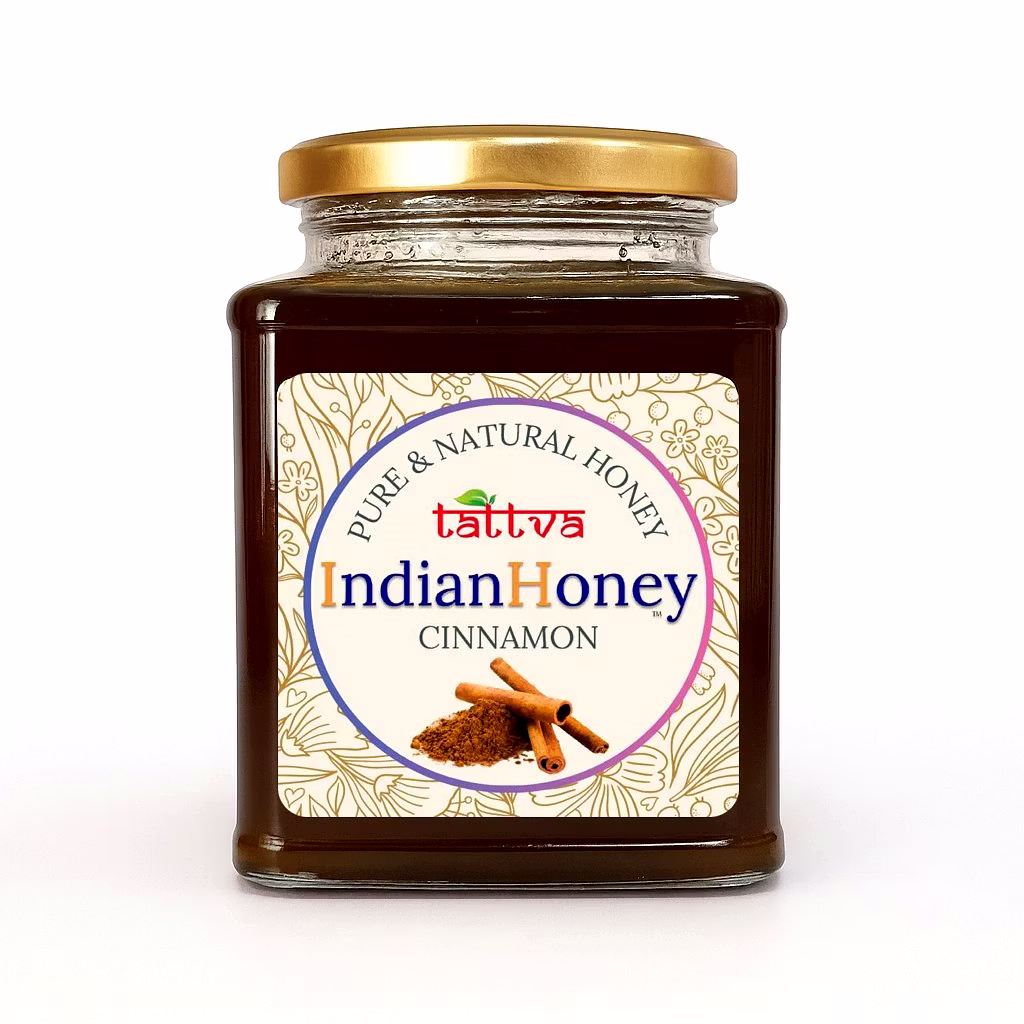 IndianHoney Honey Cinnamon | Pure & Natural Infused Honey | Premium Quality Raw Honey with Real Cinnamon | Natural Sweetener |500g Glass Jar