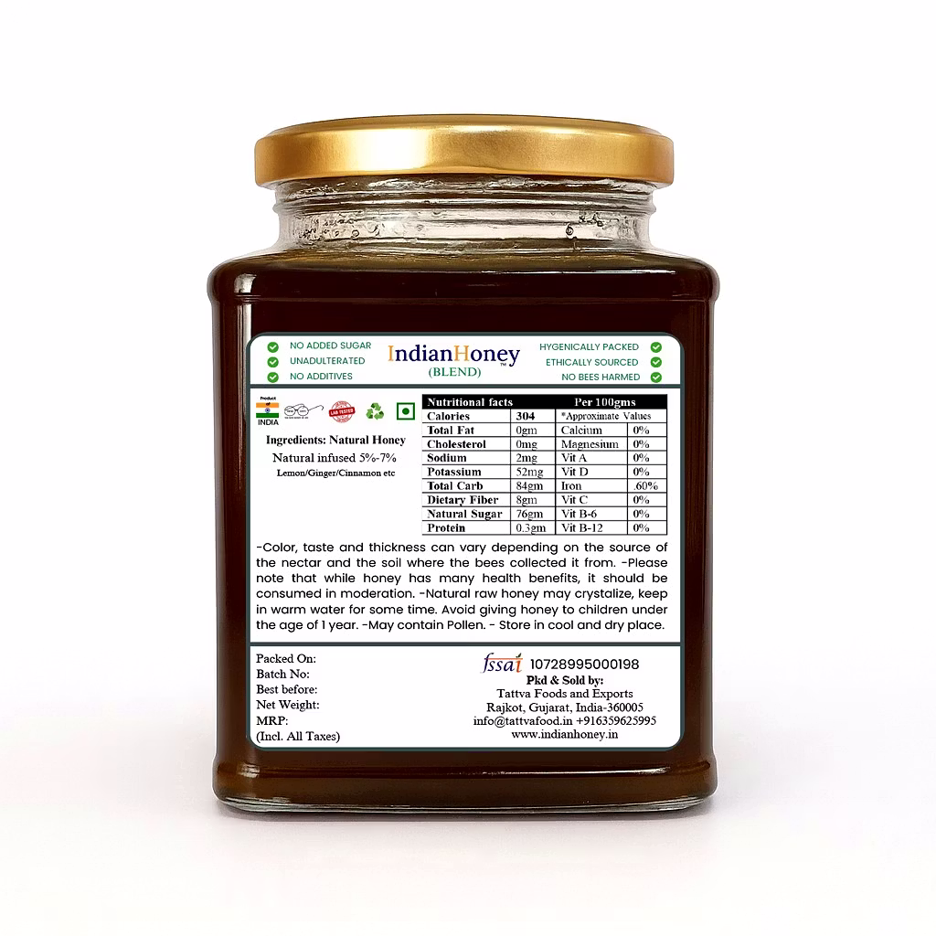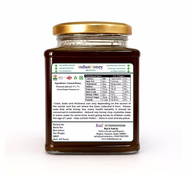 IndianHoney presents premium quality honey sourced ethically from trusted beekeepers across India. This pure and natural honey is unprocessed, unfiltered, and free from added sugar or preservatives. Rich in antioxidants, vitamins, and minerals, it serves as a natural sweetener perfect for your daily wellness routine. Use it in warm water, tea, desserts, or as a natural spread. Each 500g glass jar preserves the authentic flavor and nutritional richness of raw honey, ensuring you get the best nature has to offer in every spoonful.