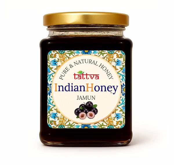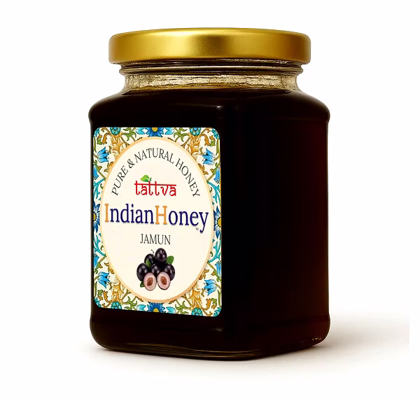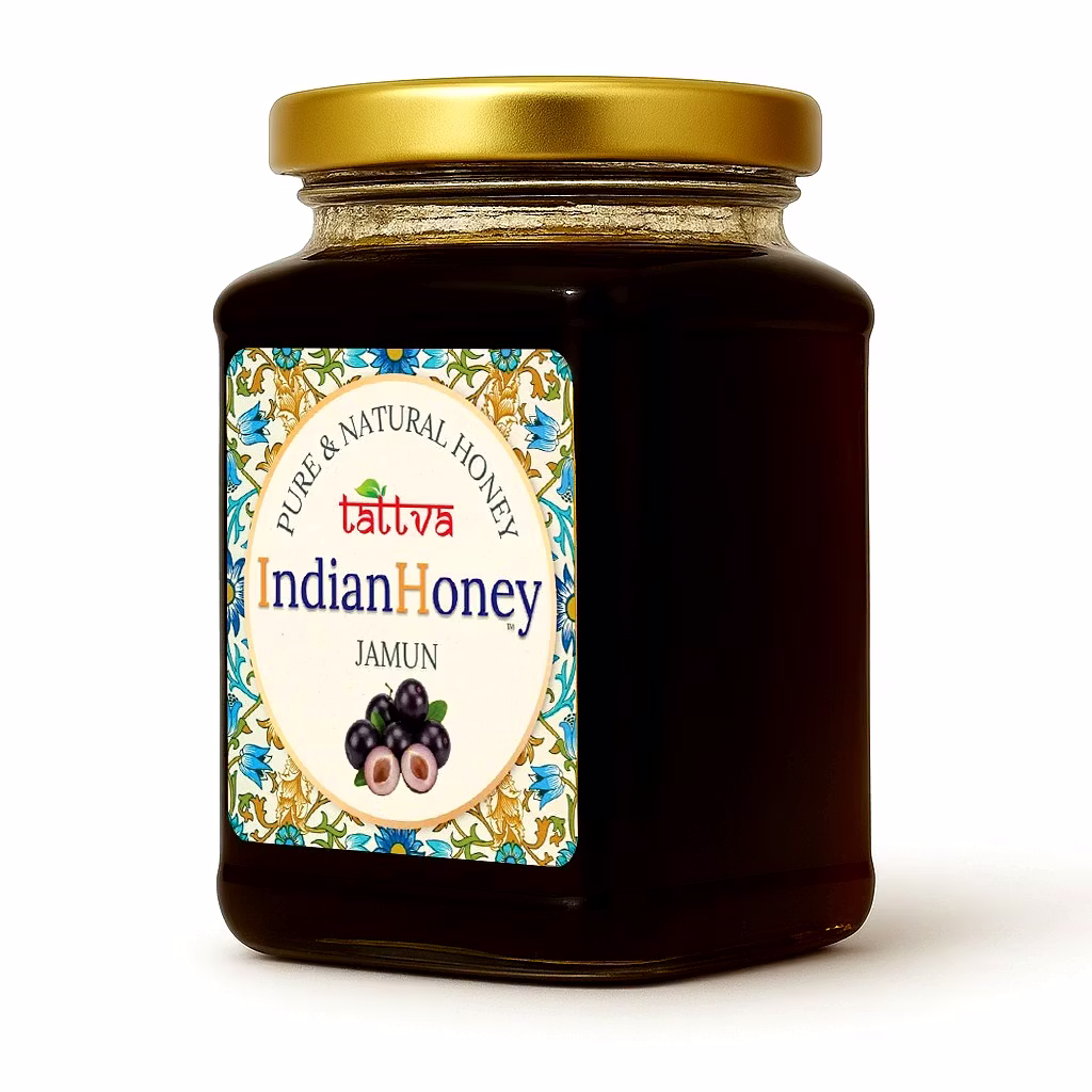 IndianHoney Jamun Honey | Pure & Natural | Unprocessed, Unfiltered, No Added Sugar | Ethically Sourced Natural Sweetener | Rich in Antioxidants |500g Glass Jar