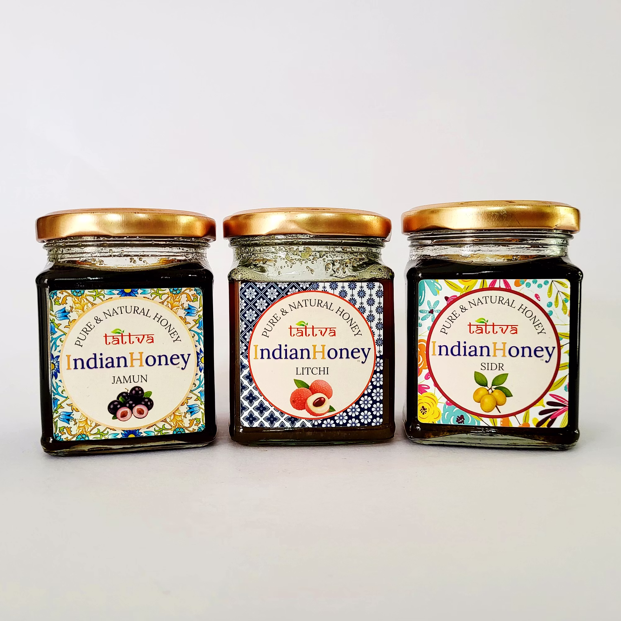 IndianHoney Jamun, litchi, & sidr Honey collection (pack of 3)500*3 GM Triple Combo Pack (500*3) Jamun litchi sidr Honey collection (pack of 3)500*3 GM Details