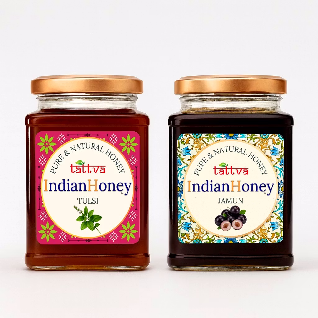 IndianHoney Jamun & Tulsi Honey Combo (Pack of 2) combines the best of nature’s floral varieties to create a balanced blend of taste, aroma, and nutrition. Each honey is raw, unprocessed, and unfiltered to preserve enzymes, antioxidants, and natural flavor. Ideal for tea, desserts, and wellness routines. Experience authentic sweetness straight from India’s forests and farms.