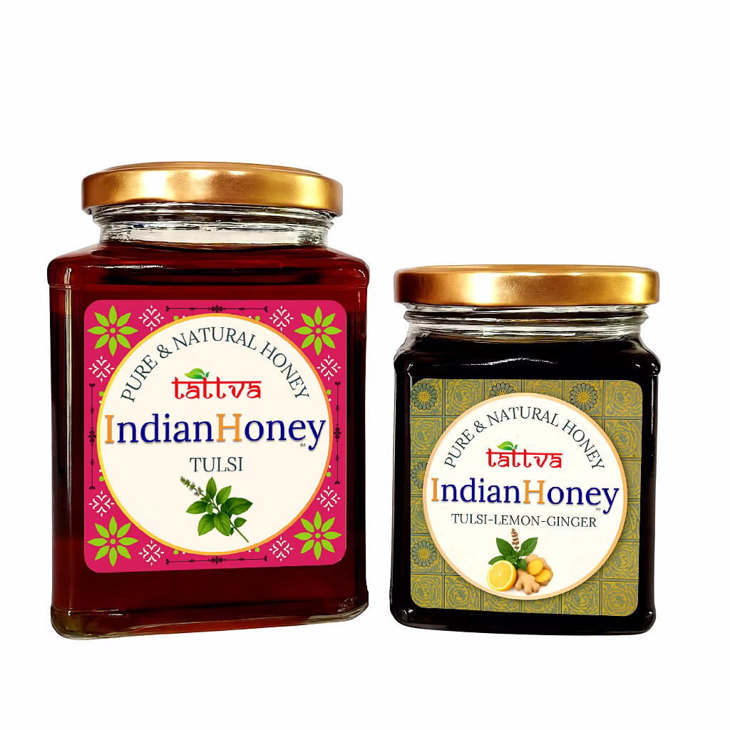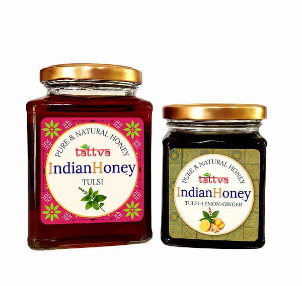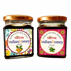 IndianHoney brings you the perfect health combination: the globally renowned and highly medicinal Sidr Honey. Prized for its powerful therapeutic benefits, aiding liver health, digestion, and vitality. and our powerful Ayurvedic Tulsi (Holy Basil) Infused Honey. Known as the 'Queen of Herbs' for its adaptogenic and expectorant properties, supporting stress relief and respiratory health. Sourced raw and pure, this duo offers complementary health benefits for your daily wellness. Ideal for use as a natural sweetener, immunity booster, or therapeutic tonic.