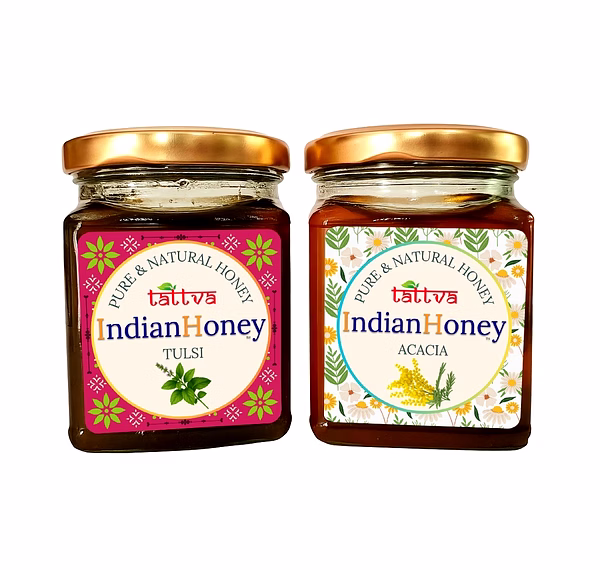 IndianHoney Rajasthan Acacia Honey & Ayurvedic & Stress-Relief natural tulsi Honey Combo Pack (230gm & 230gm) - Rajasthan Acacia & Tulsi Details