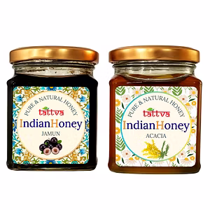 IndianHoney brings you the perfect health combination: the exceptionally light-colored and low-Glycemic Index (GI) Rajasthan Acacia Honey. Known for its mild floral taste and superior digestibility. and the specialty, diabetics-friendly Jamun Honey. Naturally low in Glycemic Index (GI) and rich in polyphenols, supporting blood sugar management. Sourced raw and pure, this duo offers complementary health benefits for your daily wellness. Ideal for use as a natural sweetener, immunity booster, or therapeutic tonic.
