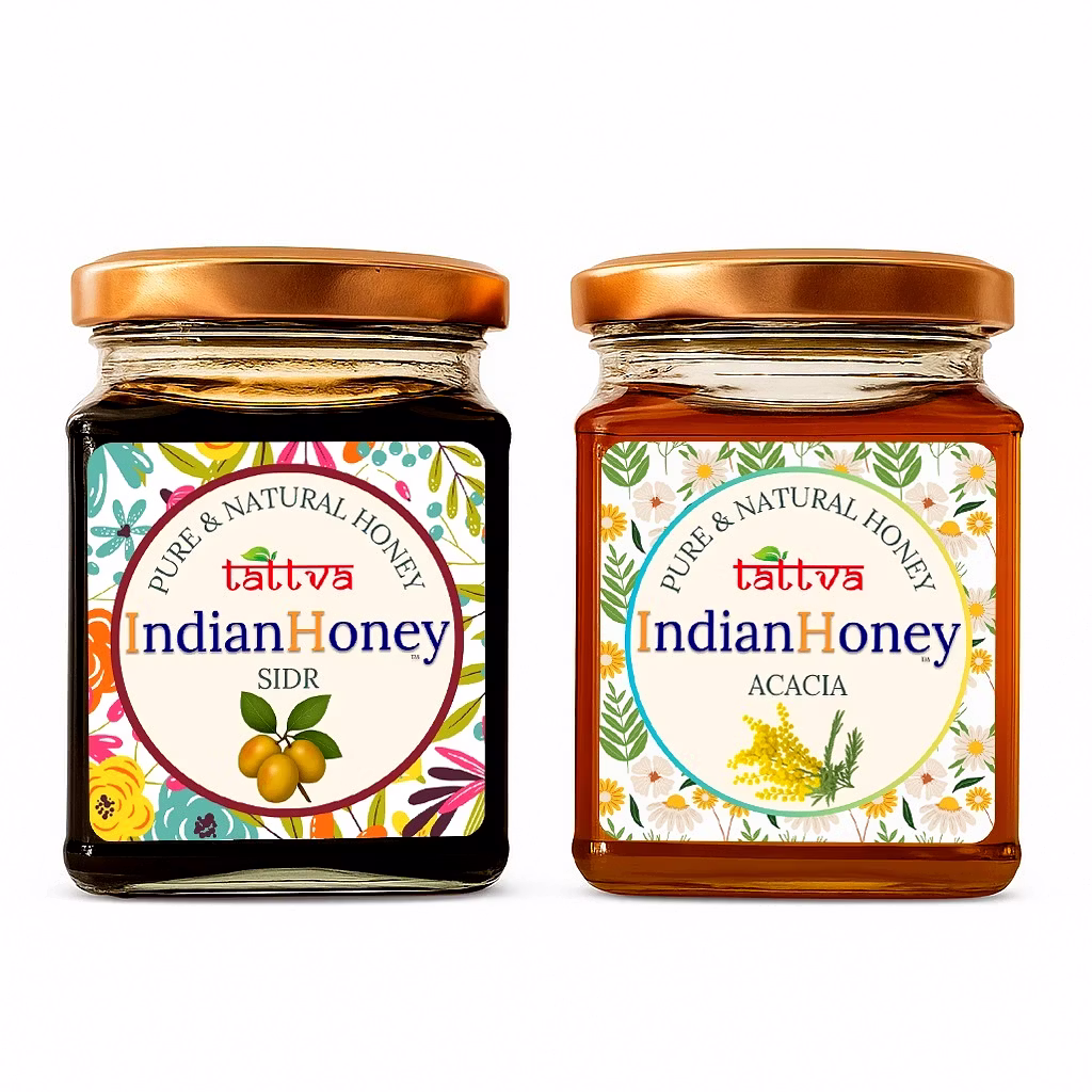 IndianHoney brings you the perfect health combination: the exceptionally light-colored and low-Glycemic Index (GI) Rajasthan Acacia Honey. Known for its mild floral taste and superior digestibility. and the globally renowned and highly medicinal Sidr Honey. Prized for its powerful therapeutic benefits, aiding liver health, digestion, and vitality. Sourced raw and pure, this duo offers complementary health benefits for your daily wellness. Ideal for use as a natural sweetener, immunity booster, or therapeutic tonic.