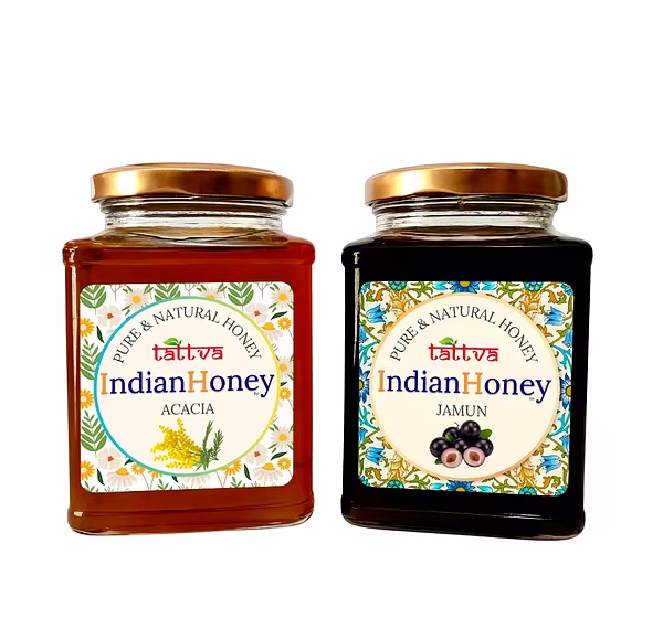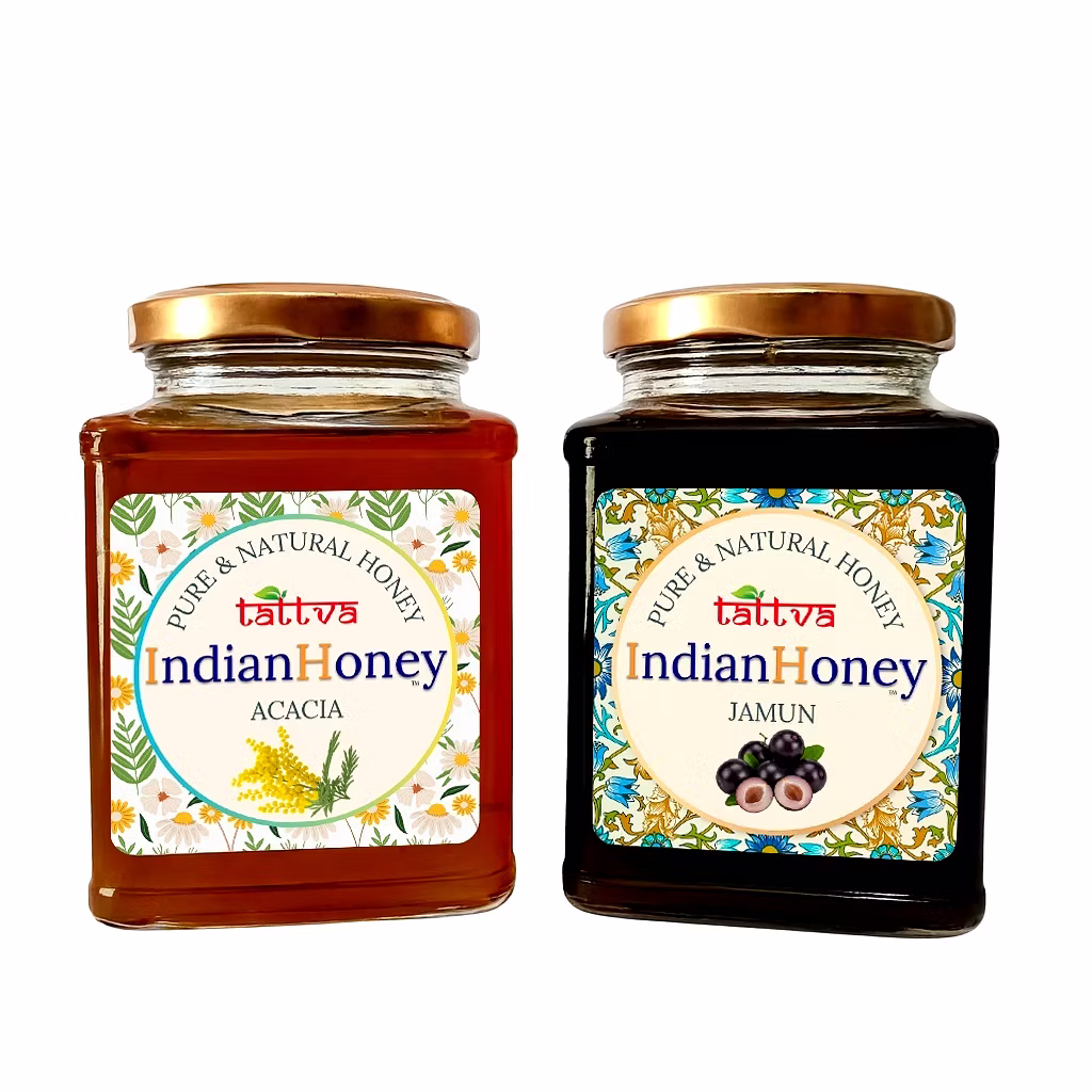 IndianHoney Rajasthan Acacia & Jamun Honey Combo (Pack of 2) combines the best of nature’s floral varieties to create a balanced blend of taste, aroma, and nutrition. Each honey is raw, unprocessed, and unfiltered to preserve enzymes, antioxidants, and natural flavor. Ideal for tea, desserts, and wellness routines. Experience authentic sweetness straight from India’s forests and farms.