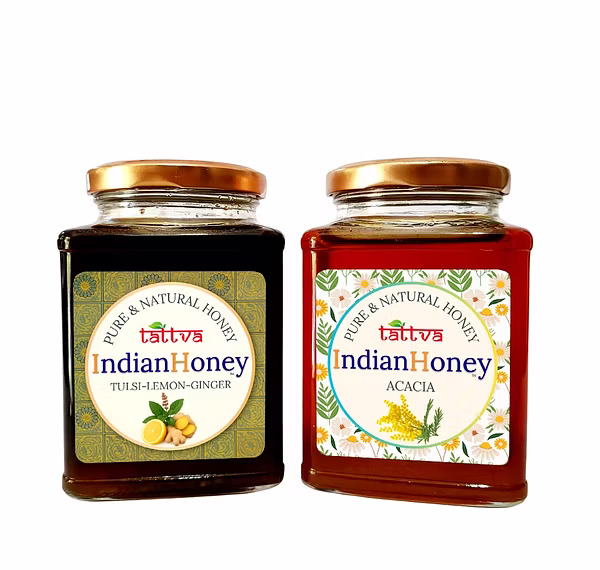 IndianHoney Rajasthan Acacia & Tulsi Lemon Ginger Honey Combo (Pack of 2) combines the best of nature’s floral varieties to create a balanced blend of taste, aroma, and nutrition. Each honey is raw, unprocessed, and unfiltered to preserve enzymes, antioxidants, and natural flavor. Ideal for tea, desserts, and wellness routines. Experience authentic sweetness straight from India’s forests and farms.