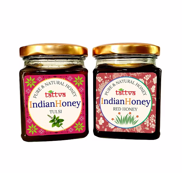 IndianHoney Red Honey & Ayurvedic & Stress-Relief natural tulsi Honey Combo Pack (230gm & 230gm) - Red Honey & Tulsi Details