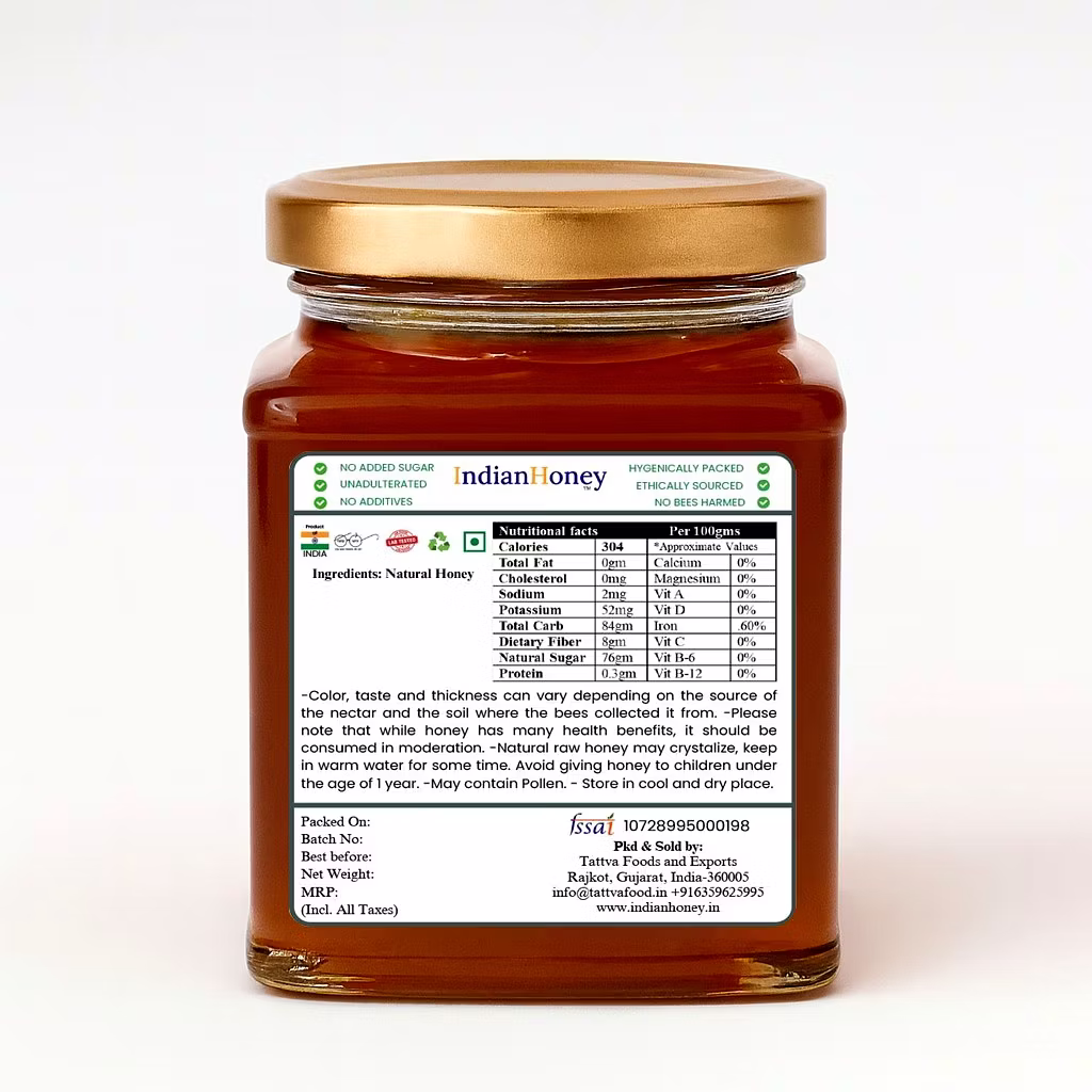 IndianHoney Wild Forest Honey (Apis Dorsata) is sourced from the dense forests of India. It has a bold, earthy flavor and is rich in minerals and antioxidants, supporting overall health and vitality.