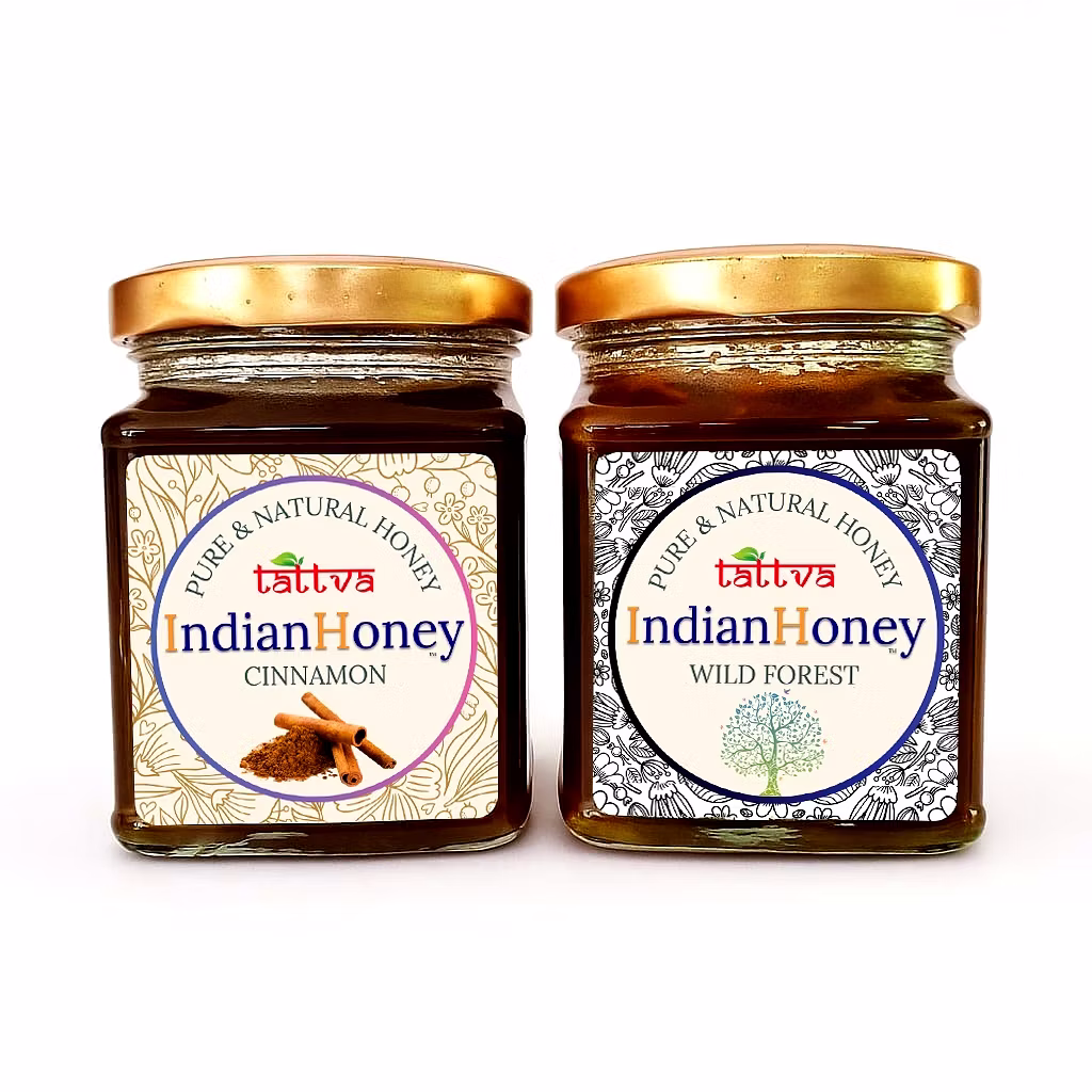 IndianHoney brings you the perfect health combination: the deep, earthy and nutrient-dense Wild Forest Honey, sourced from diverse deep-forest flora. A potent superfood known for its anti-inflammatory properties. and our metabolic-boosting Cinnamon Infused Honey. Excellent for regulating blood sugar, enhancing metabolism, and providing strong anti-bacterial support. Sourced raw and pure, this duo offers complementary health benefits for your daily wellness. Ideal for use as a natural sweetener, immunity booster, or therapeutic tonic.