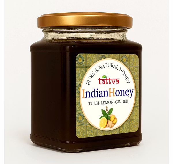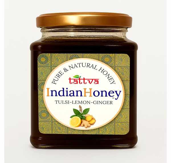 IndianHoneyTulsi lemon ginger Honey | Pure & Natural Infused Honey | Premium Quality Raw Honey with Real Cinnamon | Natural Sweetener |500g Glass Jar