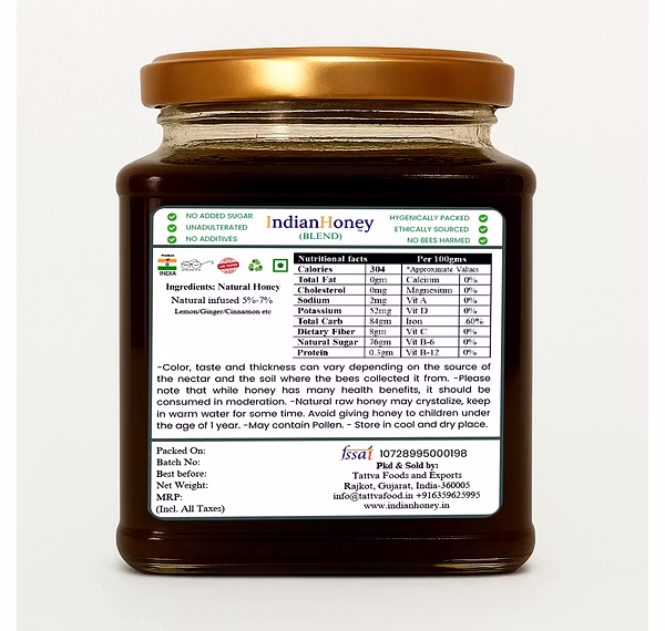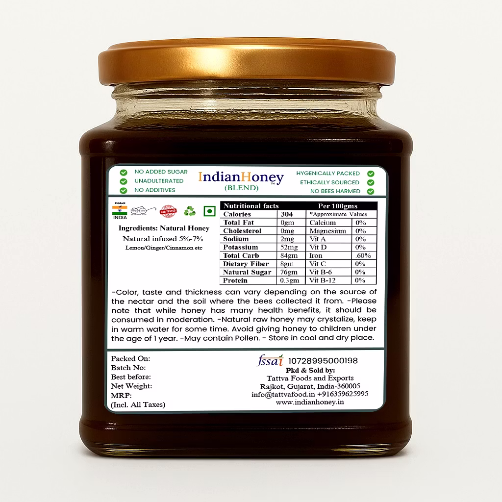 IndianHoney presents premium quality honey sourced ethically from trusted beekeepers across India. This pure and natural honey is unprocessed, unfiltered, and free from added sugar or preservatives. Rich in antioxidants, vitamins, and minerals, it serves as a natural sweetener perfect for your daily wellness routine. Use it in warm water, tea, desserts, or as a natural spread. Each 500g glass jar preserves the authentic flavor and nutritional richness of raw honey, ensuring you get the best nature has to offer in every spoonful.