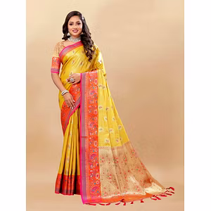 Introducing our limited edition woven Kanjivaram silk sarees, designed to help you rediscover the splendor of silk and find your perfect wear. Handcrafted in Tamil Nadu, South India, these sarees are made from pure mulberry silk, ensuring the utmost quality and luxurious feel. With their dense work and intricate detailing, these sarees are not only visually stunning but also incredibly durable, making them a long-lasting addition to your wardrobe. The scintillating shades of Irish in this particular piece add an element of elegance and grace to your overall look. The fabric details of this saree are as follows: the blouse is made of silk, while the saree itself is crafted from blended Kanjivaram silk. The blouse piece length is 0.8 meters, and the saree length is 5.5 meters, providing ample material for draping and styling it to your preference. Whether you're attending a wedding, a festive occasion, or simply looking to make a statement, our limited edition woven Kanjivaram silk sarees are the perfect choice. With their timeless appeal and unique craftsmanship, they are guaranteed to turn heads and make you feel effortlessly graceful. Experience the unmatched beauty and luxury of silk with our exquisite collection.