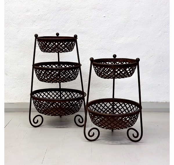 Embrace the rustic appeal of this handcrafted 3 basket set, adding a touch of sophistication to your home decor. Its sturdy iron frame and exquisite design make it a standout piece that complements any interior style.