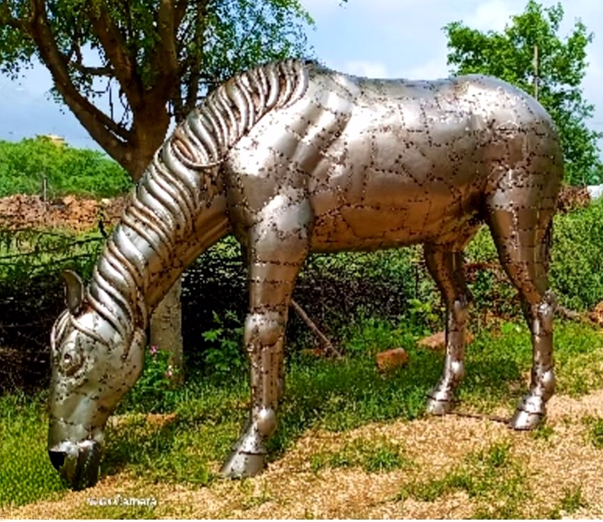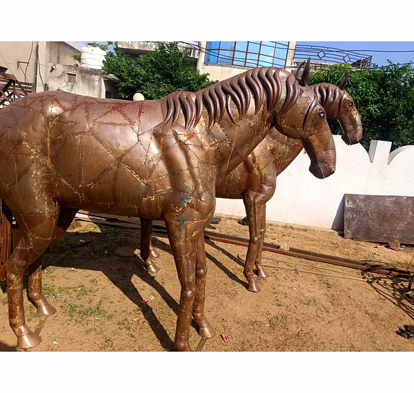 Indulge in the exquisite beauty of this handcrafted iron horse statue, meticulously crafted to resemble a real horse. Each piece represents the dedication of skilled artisans, taking approximately 20 days to create a truly one-of-a-kind masterpiece.