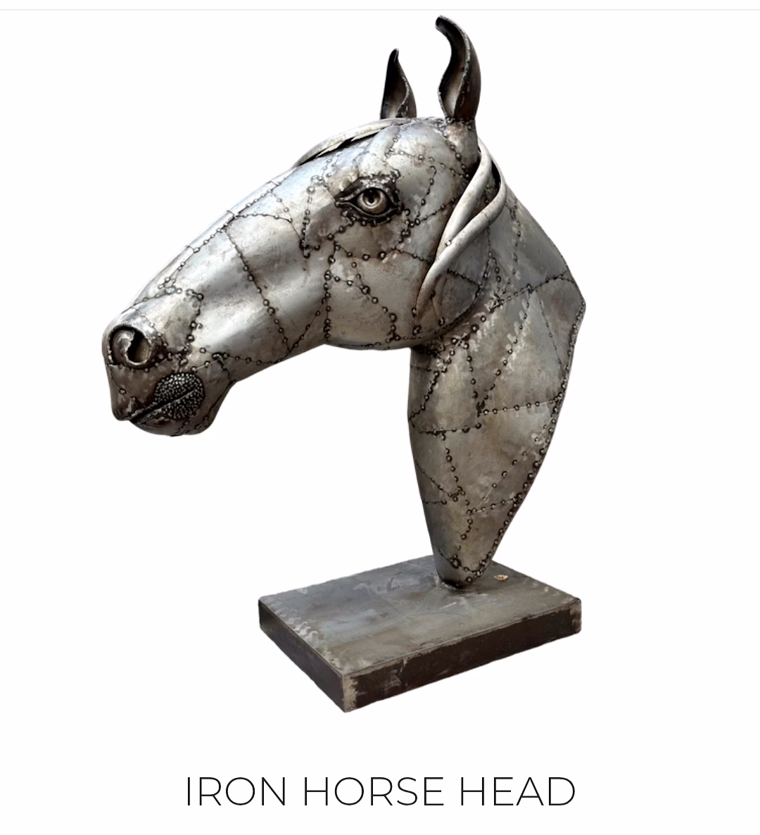Enhance your home decor with the exquisite Iron Horse Face, a unique and antique piece crafted from small iron sheet pieces. Add a touch of artistic flair to your space with this one-of-a-kind creation.