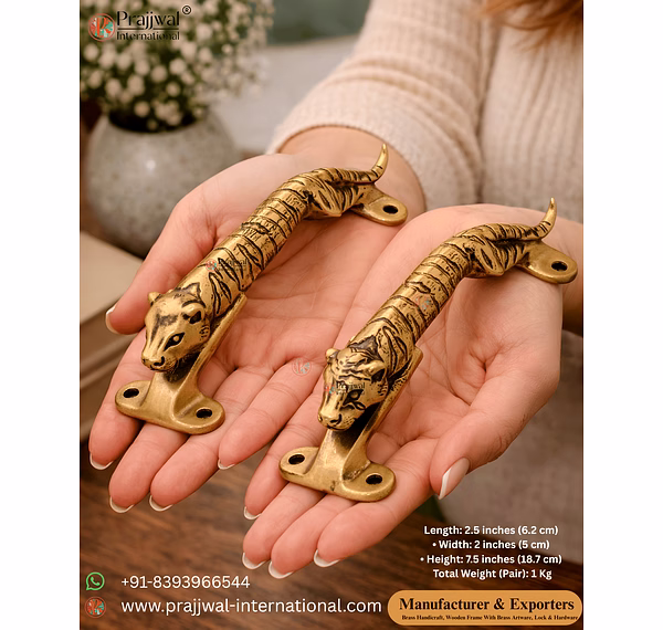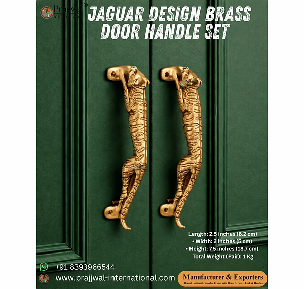 Enhance the elegance of your doors with this beautifully crafted Jaguar Design Brass Door Handle Pair. Designed with a bold jaguar motif, this handle set adds a luxurious and artistic touch to main doors, wooden doors, cabinets, and decorative interiors. Perfect for luxury homes, hotels, interior designers, and export buyers looking for unique brass hardware.