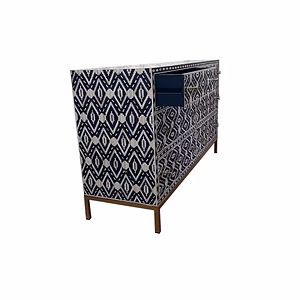 Indian bone inlay with a contemporary geometric pattern creates stunning results as seen here with this Black bone Geometric sideboard
