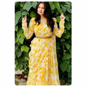 Introducing our stunning semi-stitched dress material, perfect for any special occasion! Made with heavy fox blumming georgette silk, the top and sleeves feature intricate jari chain stitch embroidery and stone work, adding a touch of elegance to your look. The heavy santoon inner and bottom provide a comfortable fit, while the heavy georgette dupatta adds a touch of sophistication. Versatile in size, this dress material can be tailored to fit up to 52" and boasts a length of up to 59". With a flair of 4.20m, the dress material drapes beautifully, making you look and feel your best. Our dress material is perfect for those who value quality and style. Whether you're attending a wedding, dinner party, or celebration, this dress material will make you stand out from the crowd. With a weight of 1.300kg+, it's both lightweight and comfortable, allowing you to dance the night away. Don't settle for anything less than the best. Order our semi-stitched dress material today and experience the perfect combination of comfort, style, and elegance!