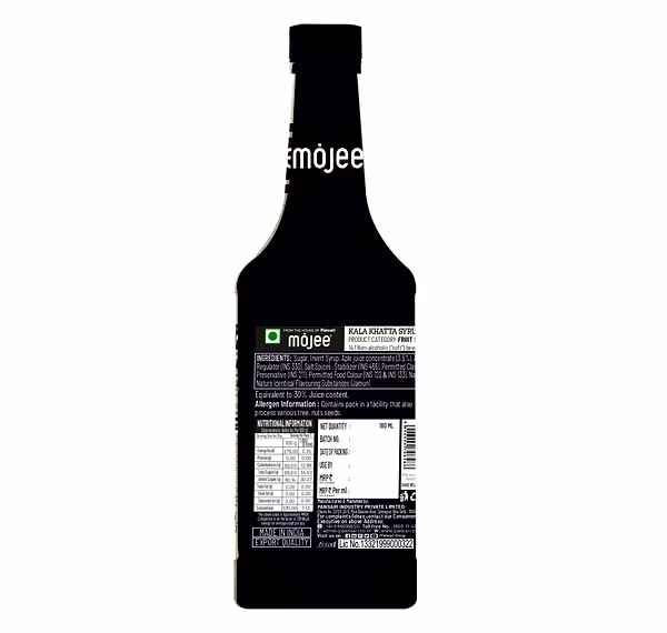 Kala Khatta Syrup 180 ML is a premium non-alcoholic beverage syrup inspired by the popular Indian kala khatta flavor, known for its tangy, slightly sweet, and refreshing taste. It is widely used in mocktails, sodas, slush drinks, and traditional summer beverages.
