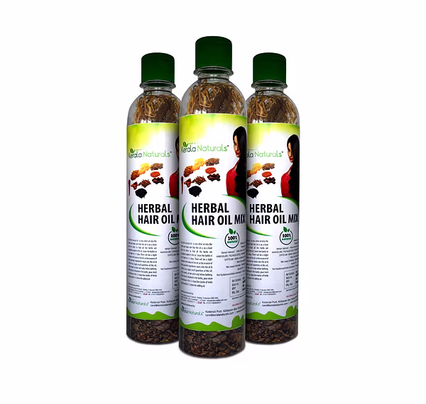 100% Natural HERBAL HAIR OIL MIX: Devadaru – Cedrus deodara Ramacham - Vetiver roots Idampiri Valampiri - Indian Screw Tree - Helicteres isora KARKOKILARI / PSORALEA SEEDS / PSORALEA CORYLIFOLIA CHITTELAM - Malabar cardamom, Ceylon cardamom Black Cumin Seeds - Nigella sativa Red creeper (Vembada) - Ventilago maderaspatana Aavaram Poo - Cassia Auriculata Red Sandalwood(Raktha Chandanam) - Pterocarpus santalinus Pour fresh coconut oil / or any other oil into the bottle and make sure that the oil is on a level with the herbs so that all the herbs are completely soaked in the oil. Leave the bottle in sun/ shade for 2-3 days. There will be a slight variation in the colour of the oil, as the essence of these ayurvedic ingredients oozes into the oil & ready for use. Apply small quantities of this oil, twice a week, on hair and scalp before bathing. Once the oil is finished in the bottle, pour more oil and leave it for 2-3 days. One bottle of herbs can be used for 2-3 times for adding oil.