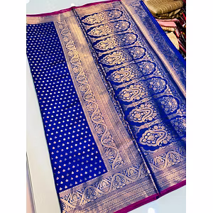 The Kanchipuram Handloom Pure Silk Saree with Gold Jari and a Pink Border is an exquisite representation of India's rich textile heritage and craftsmanship. Originating from the temple city of Kanchipuram, often referred to as the "Silk City," this saree is a symbol of elegance, tradition, and opulence. The saree is meticulously woven using the finest quality mulberry silk, which lends it an unparalleled sheen and luxurious texture. The process of creating this masterpiece involves intricate handloom techniques passed down through generations of skilled weavers. Each thread is carefully chosen and woven to perfection, ensuring the saree's durability and timeless beauty. One of the most striking features of this saree is the gold jari work. Jari, a type of metallic thread traditionally made from pure gold or silver, is used to create intricate patterns and motifs on the fabric. The gold jari work on this saree adds a touch of regal splendor and opulence, making it a perfect attire for grand occasions such as weddings, festivals, and celebrations. The motifs often draw inspiration from nature, mythology, and temple architecture, reflecting the cultural richness of Kanchipuram. The stunning pink border of the saree provides a striking contrast to the rich, lustrous body. The border is also adorned with intricate jari designs, enhancing the saree's overall elegance and appeal. This combination of vibrant pink and shimmering gold creates a harmonious blend of colors that is visually captivating. Draping a Kanchipuram Handloom Pure Silk Saree with Gold Jari and a Pink Border is an experience in itself. It is not just a piece of clothing but a work of art that embodies the essence of Indian tradition and craftsmanship. The saree drapes gracefully, accentuating the wearer’s silhouette and exuding an aura of sophistication and grace. The rich texture and intricate design make it a versatile piece that can be styled in various ways, allowing the wearer to make a distinct style statement. In essence, this Kanchipuram saree is a timeless treasure that combines tradition, artistry, and luxury. It is a perfect choice for those who appreciate the finer things in life and wish to celebrate their heritage with pride and elegance. Owning and wearing this saree is not just about fashion; it is about embracing a legacy of exquisite craftsmanship and cultural heritage.