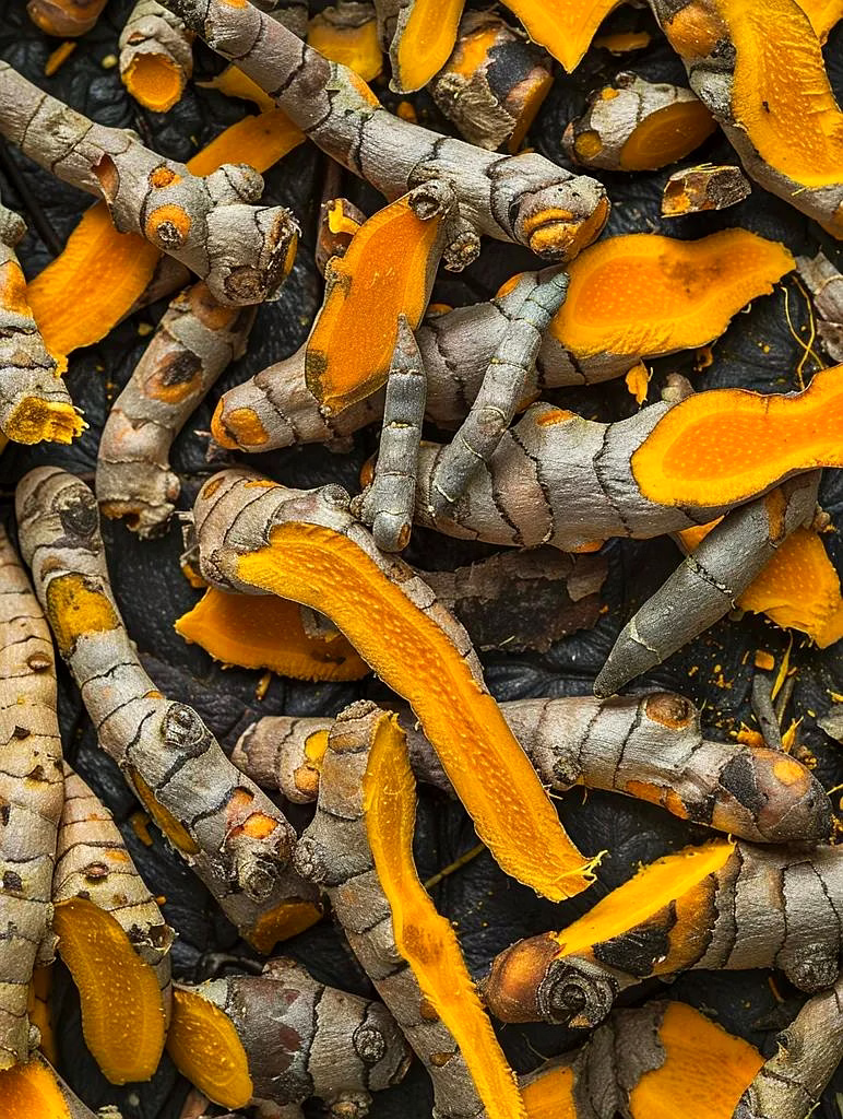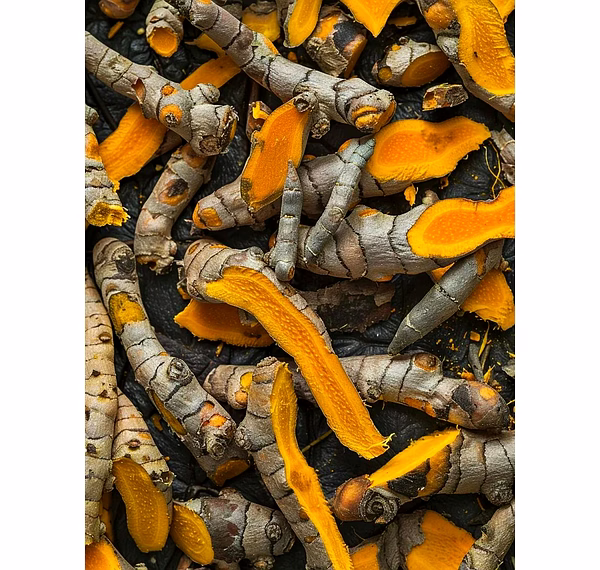 Form: Dried turmeric bulbs (secondary rhizomes)