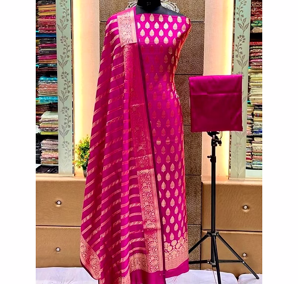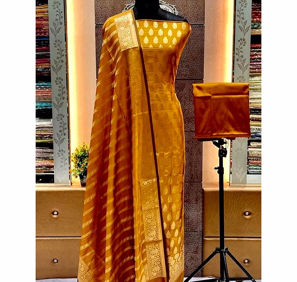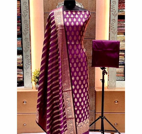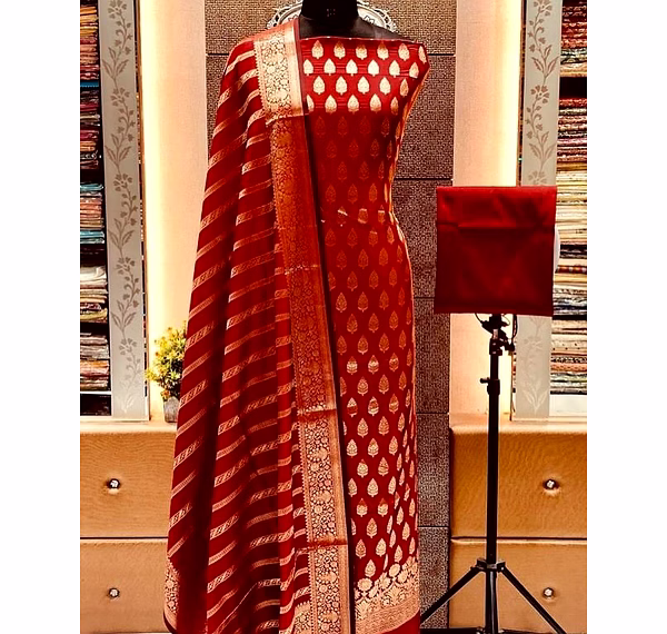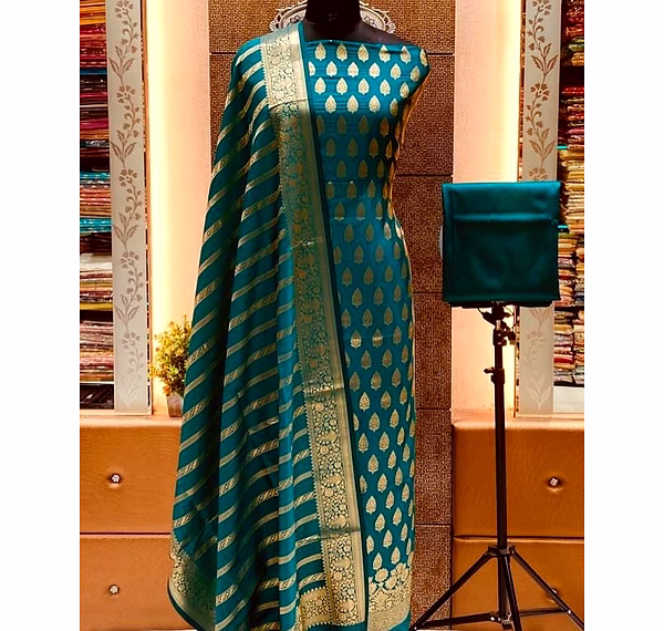Handloom Weaving: Most authentic Katan suits are handwoven, often featuring Kadwa or Phekwa techniques.