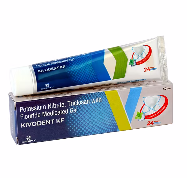 *KIVODENT KF*: A brand of Potassium Nitrate 5% w/w + Triclosan 0.3%w/w + Sodium Monoflourophosphate 0.7% w/w Medicated Gel