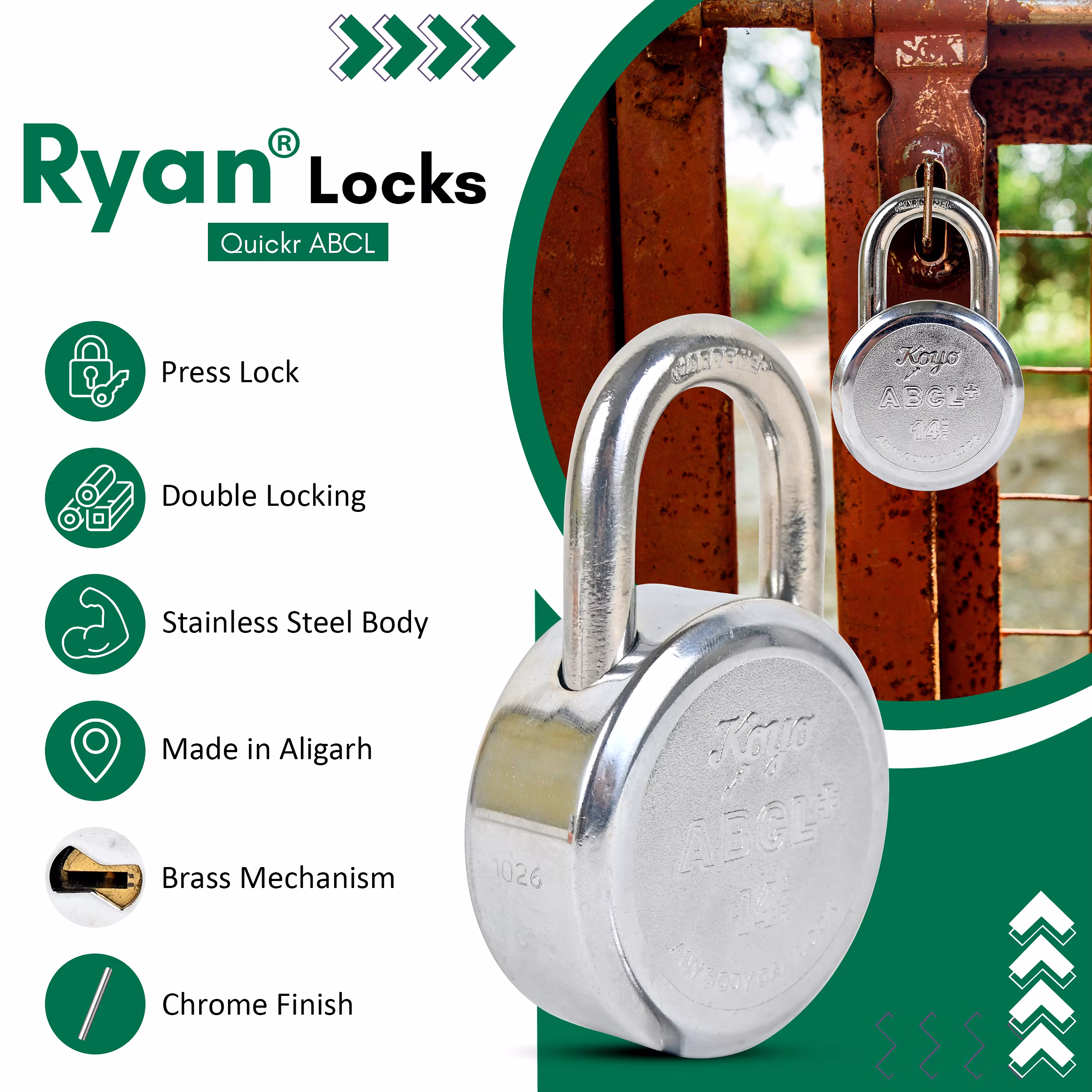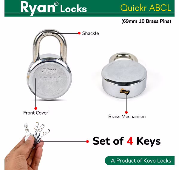 The Koyo ABCL+ 65mm stainless steel push padlock is designed for high security and durability. Its sturdy stainless steel body ensures resistance against corrosion, making it ideal for both indoor and outdoor use. The padlock features a push mechanism for easy and secure locking. It comes with 4 ultra-durable brass keys, providing smooth operation and long-lasting reliability.