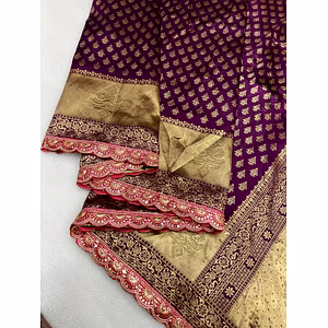 Introducing the Lace Morni BANARASI Saree - a masterpiece that exudes elegance and grace, perfect for any occasion. Made with high-quality Banarasi silk, this saree features a beautiful cut work embroidery lace border that adds a touch of sophistication to its overall design. With a length of 6.3 meters, it offers ample room to drape and style it to your liking, while the available colors (4 in total) provide versatility in choosing the perfect shade to match your style. This saree comes with a blouse piece that complements the overall design, allowing you to complete the look effortlessly. Its unique selling point lies in its versatility - it can be worn to a formal event, a family gathering, or even a wedding ceremony. The intricate lace border design adds a touch of modernity to this traditional Banarasi saree, making it a perfect choice for the modern woman. Crafted with utmost care and attention to detail, the Lace Morni BANARASI saree is a must-have for any saree lover. Its high-quality fabric, stunning design, and beautiful finish make it a timeless piece that you can cherish for years to come. With this saree, you'll be sure to turn heads and make a lasting impression. Order now and add this gorgeous saree to your collection today!