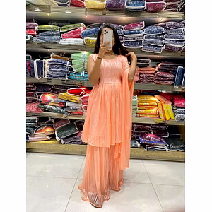 Blush pink Anarkali with detachable embroidered belt paired with embroidered dupatta