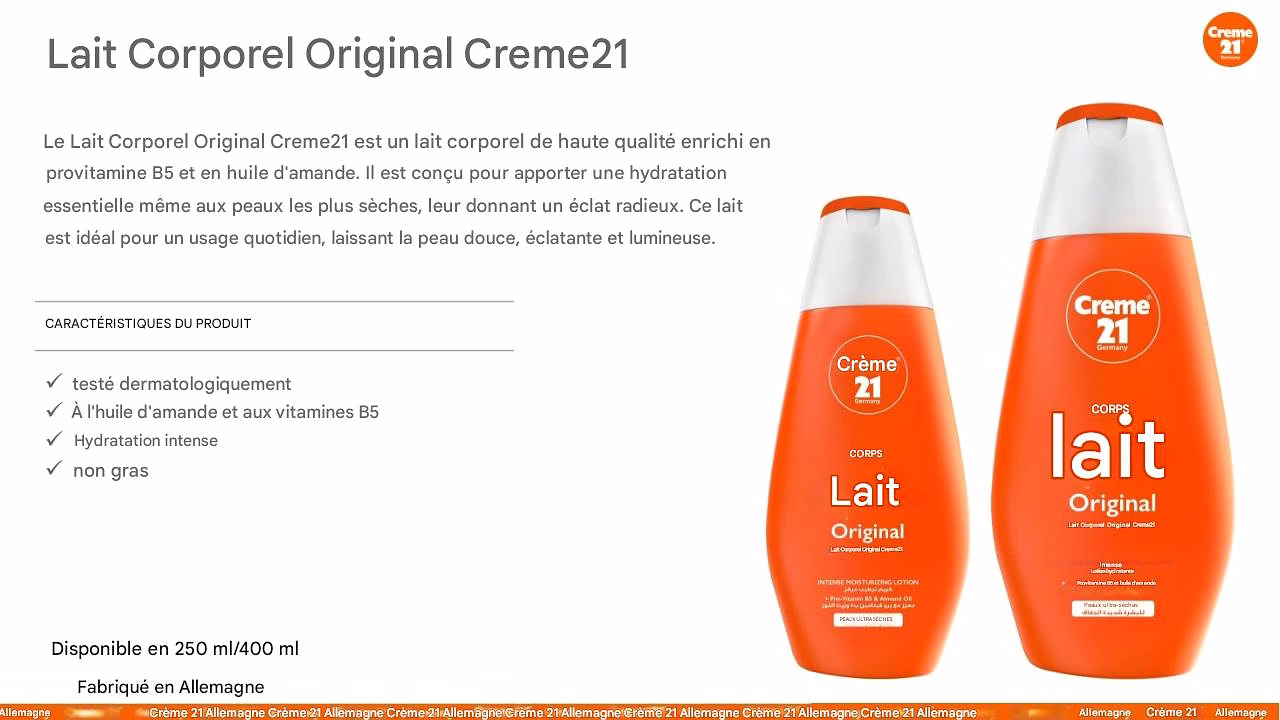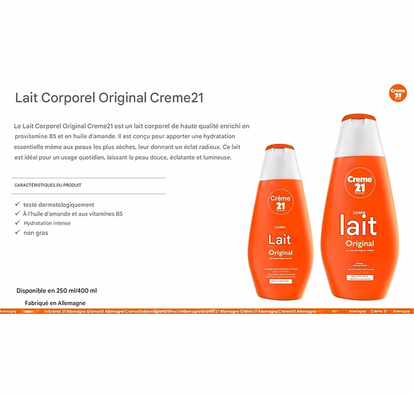 Lait Corporel Original Creme21 :