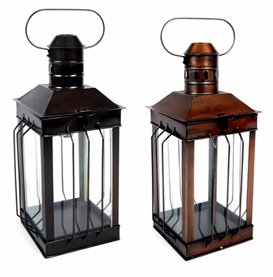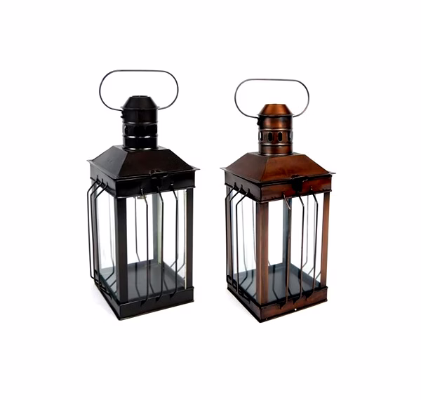 This lantern is made of iron and glass. It measures 7x7x13.50 inches and weighs 1.15 kg. It is a medium-sized lantern suitable for decorative purposes.