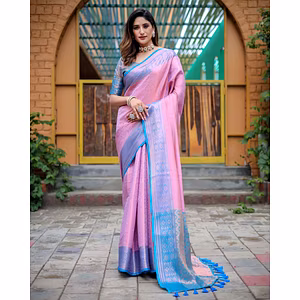 Indulge in the rich heritage of Indian craftsmanship with the Lavender Kanchi Pattu Saree. The intricate zari work and delicate motifs in soothing lavender hues exude an aura of timeless beauty, perfect for weddings or special occasions.