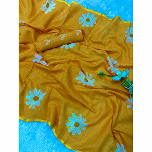 �Saree Fabric: Soft Linen Saree with Thread Work Style Silver Woven Border. Beautiful Embroidery Panel Work. Cotton Tassels on Pallu.