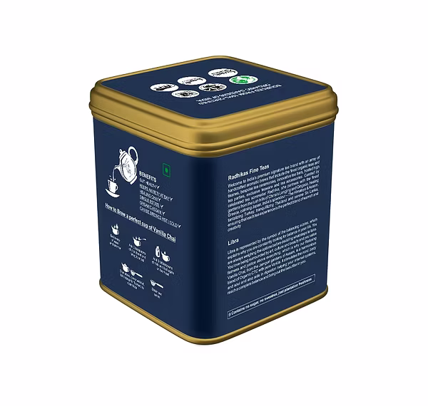 Libra is symbolized by the balancing scales, reflecting your constant pursuit of harmony in life. You carefully consider your choices, valuing fairness, beauty, and cultural richness. Our Relaxing Vanilla Chai, sourced from the Jamguri gardens of Assam, combines Organic CTC tea with pure Vanilla to create a perfectly balanced blend.