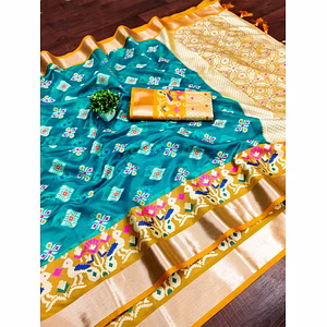 Introducing our Lightweight Dola Silk Saree, a masterpiece that combines elegance, tradition, and comfort. This saree is crafted with utmost care and skill, featuring a stunning Pichwai Bandhej design that will leave you mesmerized. The intricate patterns and vibrant colors are a testament to the rich heritage of Indian textile art. One of the standout features of this saree is its lightweight nature, making it incredibly easy to drape and carry. Whether you're attending a social gathering or a formal event, you'll feel graceful and confident in this saree that effortlessly drapes around your body. The delicate and soft Dola silk fabric ensures a luxurious feel against your skin, allowing you to move with ease and comfort throughout the day or evening. The fabric's breathable properties make it perfect for any season, keeping you cool and stylish in hot weather and providing warmth in cooler temperatures. Adding to its charm, the saree is elegantly adorned with a viscose border, enhancing its overall appeal. The contrasting border beautifully complements the intricate design, creating a captivating visual effect that is sure to turn heads wherever you go. Beyond its aesthetic appeal, this saree offers versatility and practicality. Its timeless design makes it suitable for various occasions, be it a wedding, festival, or a casual outing. You can effortlessly pair it with different types of blouses and accessories to create a unique and personalized look each time you wear it. In summary, our Lightweight Dola Silk Saree with its stunning Pichwai Bandhej design, lightweight nature, soft Dola silk fabric, and viscose border is the epitome of grace and elegance. It effortlessly combines tradition and modernity, making it a must-have addition to every fashion-conscious woman's wardrobe. Embrace the beauty and charm of this saree, and let your style speak volumes.