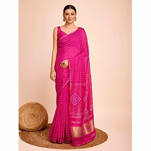 The Saree-On Box Dola Silk Pattern is a masterpiece of Indian craftsmanship that exudes elegance and sophistication. The saree is made from high-quality Dola Silk material, which provides a luxurious feel and offers exceptional comfort. The unique design of the saree features a stunning *5*2 jeq border that adds a touch of glamour to its overall appearance. The saree comes with an unstitched blouse made from Gold Box Dola Silk, which perfectly complements the saree's design and makes it a perfect fit for formal and casual occasions. The blouse features a matching border that blends seamlessly with the saree's overall design, giving it a complete and polished look. One of the unique selling points of this saree is that the saree border may change sometimes, which means that you will own a truly one-of-a-kind piece that is exclusive to you. This makes this saree a must-have for fashion-conscious women who are looking for a unique and stylish piece that sets them apart from others. In conclusion, the Saree-On Box Dola Silk Pattern is a beautiful and versatile saree that combines comfort, style, and elegance. Its high-quality material, unique design, and unmatched craftsmanship make it a perfect choice for women who want to look their best at all times. Whether you're attending a wedding, a party, or any other special occasion, this saree is sure to turn heads and make you the center of attention.