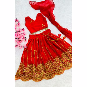 The Lilac Sequin Butterfly Net Lehenga Choli is the ideal outfit for the discerning partygoer desiring an elegant and comfortable blend. The lightweight butterfly net fabric offers breathability and freedom of movement, allowing you to celebrate in style all night long. This Indian ethnic wear lehenga choli set is perfect for various festive events, leaving a lasting impression with its show-stopping allure.