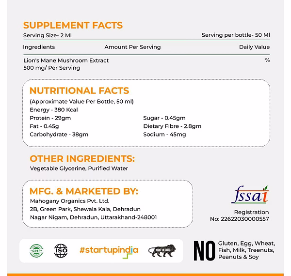 Lion’s Mane Mushroom, known as Hericium erinaceus, is a premium herbal supplement celebrated for its brain-boosting and nerve-supporting properties. This natural adaptogen helps enhance cognitive function, memory, focus, and mental clarity. Rich in antioxidants and bioactive compounds, Lion’s Mane also supports immune health, reduces inflammation, and promotes overall vitality. Traditionally used in Eastern medicine, it is a safe and natural way to support brain and nervous system health.