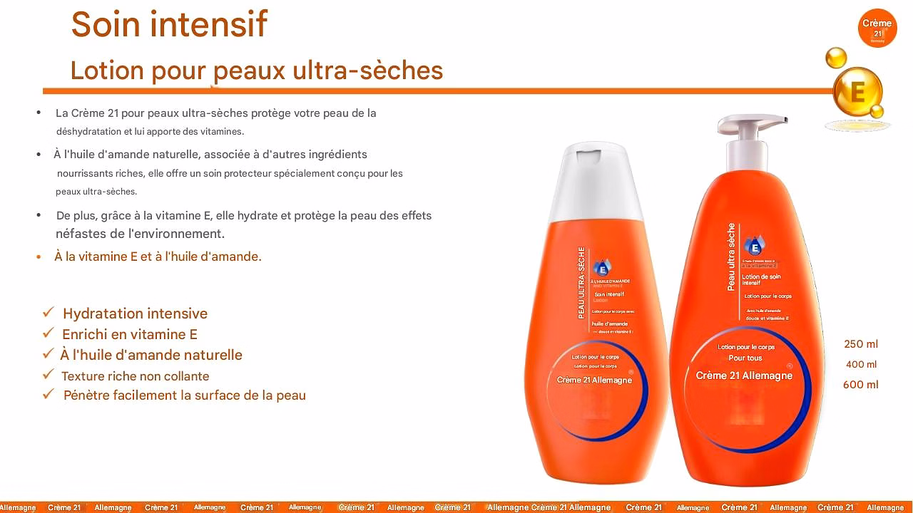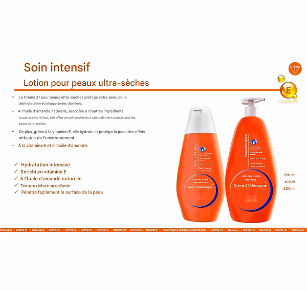 • La Crème 21 pour peaux ultra-sèches protège votre peau de la déshydratation et l'enrichit en vitamines.
