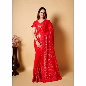 This Lucknowi Chikankari Silk Saree with Viscose Embroidery is a masterpiece of Indian craftsmanship. Made from the finest quality silk, this saree features intricate chikankari work on the body and pallu that is hand-embroidered by skilled artisans from Lucknow. The delicate floral designs are accentuated by the subtle sheen of the silk, giving the saree an ethereal quality. The saree comes with a matching blouse piece that is also adorned with chikankari work. The blouse can be customized to your preferred style, making it a versatile addition to your wardrobe. The saree measures 6 meters in length, providing ample draping material to create a variety of styles. One of the unique selling points of this saree is the use of viscose embroidery to create a three-dimensional effect. This technique gives the chikankari work a lifelike quality, making the flowers and leaves seem to pop off the fabric. The result is a saree that is both elegant and modern, perfect for any occasion. In addition to its stunning beauty, this saree is also incredibly comfortable to wear. The silk fabric is lightweight and breathable, making it ideal for long hours of wear. The chikankari work is also soft to the touch, ensuring that it does not cause any irritation or discomfort. Overall, this Lucknowi Chikankari Silk Saree with Viscose Embroidery is a must-have for any woman who appreciates the beauty and intricacy of Indian textiles. With its timeless elegance and modern flair, it is sure to become a cherished addition to your wardrobe for years to come.