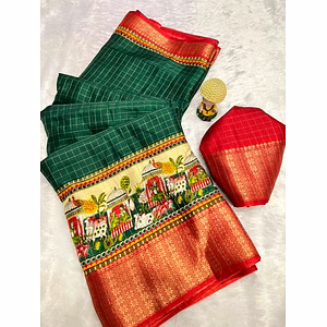 The Luxurious Dola Silk Saree is the ultimate choice for women who seek unmatched comfort, style, and elegance. Made from the finest quality silk, this saree is incredibly soft and smooth, offering a luxurious feel against your skin. You will never have to worry about rough or scratchy fabric again! Apart from its luxurious feel, this saree is also incredibly stylish and vibrant. The colorful and intricate patterns will make you stand out in any crowd, while the elegant design will make you the center of attention at any occasion. Whether you're attending a wedding, party, or any other social event, this saree will make you look and feel your best. One of the unique selling points of this saree is its versatility. You can wear it in a variety of ways, depending on your mood and style. You can drape it in a traditional way or experiment with modern draping styles to create a unique look. The possibilities are endless! In addition to its style and comfort, this saree is also incredibly durable and easy to care for. You can wear it for years without worrying about fading or fraying. Simply wash it at home and hang it to dry, and it will be as good as new. In summary, the Luxurious Dola Silk Saree is the perfect combination of style, comfort, and durability. It offers unmatched quality and value for your money, and is the ultimate choice for women who want to look and feel their best. Don't miss out on the opportunity to own this exquisite piece of clothing!
