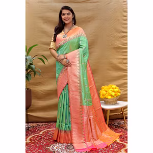 The Pure Satin Handloom Silk Saree is the epitome of luxury and elegance. Handcrafted with the utmost care and attention to detail, this saree is the perfect addition to any wardrobe. The multi-colored flower weaving work adds a touch of sophistication and uniqueness to this already stunning piece. Made from high-quality pure satin handloom silk, this saree is perfect for any occasion, whether it's a wedding, festival, or any other special event. Its light and breathable fabric make it comfortable to wear, even on the hottest of days, while its elegant design ensures you'll stand out in a crowd. This saree comes with an unstitched pure satin handloom silk blouse, allowing you to customize the fit to your liking. The blouse is designed to perfectly complement the saree, ensuring a cohesive and elegant look. Whether you're looking to make a statement or simply want to add a touch of elegance to your wardrobe, the Pure Satin Handloom Silk Saree is the perfect choice. With its luxurious fabric, intricate design, and unparalleled quality, this saree is sure to turn heads and leave a lasting impression. Don't miss out on the opportunity to own this stunning piece of traditional attire.
