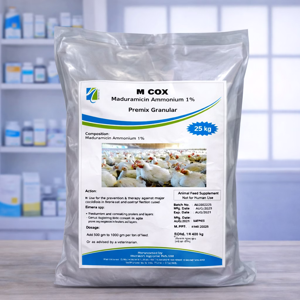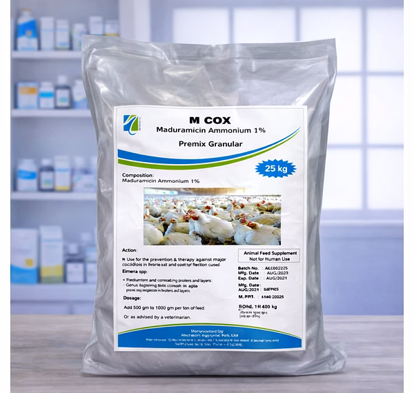 M Cox 1% - Maduramicin Ammonium 1% Granular is a poultry supplement supplied in bulk packaging and classified under Liver Support And Detox Metabolic Health Poultry Supplements. The product is positioned for buyers requiring specification-matched sourcing and consistent identification during procurement and resale.