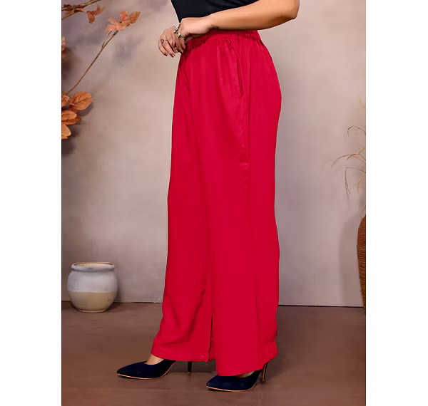 Functional side pockets add practicality without disrupting the clean, stylish look. Whether you're heading out for a casual brunch, lounging at home, or traveling, these solid-color palazzos are easy to pair with tops, tunics, or kurtis, offering endless styling possibilities.
