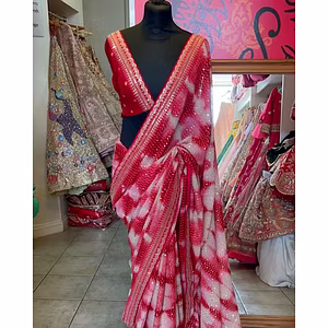 Indulge in the intricate Mandala print design of this saree, a testament to fine craftsmanship and attention to detail. The Georgette Satin fabric adds a touch of luxury, making it perfect for special occasions.