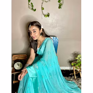 Experience the ease of wearing this freehand saree that combines traditional charm with modern convenience. The fluid drape and flattering silhouette ensure you stand out with effortless elegance.
