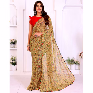 Indulge in luxury with the premium Georgette and Silk blend of the Mandira Bedi Saree. The Georgette fabric offers a lightweight drape, while the Silk adds a touch of sophistication, making you stand out with grace.